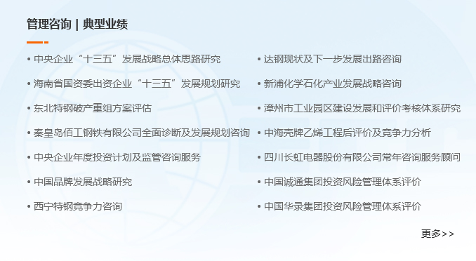 高質(zhì)量的項(xiàng)目實(shí)施是確保戰(zhàn)略謀劃精準(zhǔn)落地的必要環(huán)節(jié),后評(píng)價(jià)是保障高質(zhì)量項(xiàng)目實(shí)施重要手段。中咨公司在后評(píng)價(jià)相關(guān)咨詢(xún)服務(wù)中具備先進(jìn)的咨詢(xún)理念、完善的評(píng)估方法、成套的管理體系和制度,積極為各類(lèi)項(xiàng)目提供全方位、多維度、跨領(lǐng)域的咨詢(xún)服務(wù)。