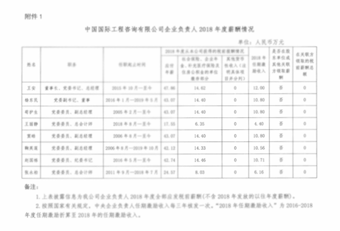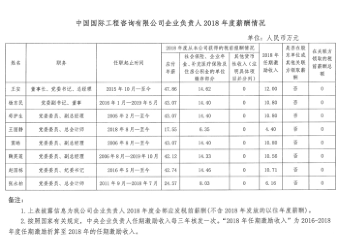 中國國際工程咨詢有限公司企業(yè)負(fù)責(zé)人2018年度薪酬情況披露