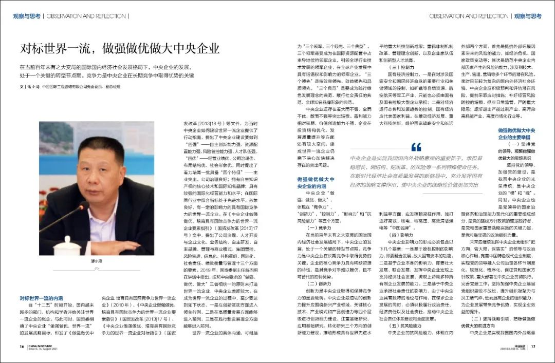 潘小海 | 對(duì)標(biāo)世界一流,做強(qiáng)做優(yōu)做大中央企業(yè)