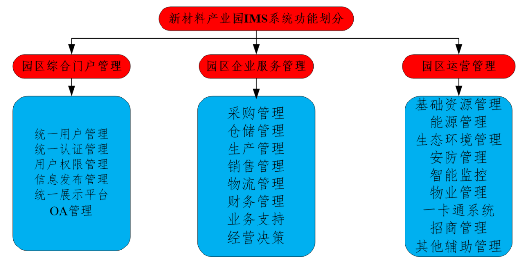 面向新材料產(chǎn)業(yè)園的智慧管理系統(tǒng)研究 王瑞江 朱曉霞 張莉莉 夏艷麗 摘要: 產(chǎn)業(yè)園區(qū)是區(qū)域經(jīng)濟(jì)發(fā)展、城市可持續(xù)健康發(fā)展、產(chǎn)業(yè)轉(zhuǎn)型升級(jí)的重要集聚區(qū)。而園區(qū)信息化建設(shè)是產(chǎn)業(yè)園發(fā)展的重要支撐部分,又是區(qū)域經(jīng)濟(jì)發(fā)展、城市建設(shè)發(fā)展的新主題與新動(dòng)力,創(chuàng)建以智能技術(shù)為支撐的生態(tài)、高效的智慧園區(qū)是未來的趨勢(shì)。本文就以新材料產(chǎn)業(yè)園規(guī)劃建設(shè)為基礎(chǔ),明確其建設(shè)目標(biāo)和需求,提出新材料產(chǎn)業(yè)園智慧管理系統(tǒng),設(shè)計(jì)了系統(tǒng)總體架構(gòu)、技術(shù)架構(gòu)以及各功能模塊,并對(duì)各功能模塊進(jìn)行詳細(xì)闡述,力求為新興產(chǎn)業(yè)園區(qū)的智能化、信息化、數(shù)字化建設(shè)提供一些參考。 關(guān)鍵詞: 新材料產(chǎn)業(yè)園; 智能管理; 系統(tǒng)設(shè)計(jì); ERP系統(tǒng) 產(chǎn)業(yè)園作為區(qū)域經(jīng)濟(jì)發(fā)展的助推器,是區(qū)域經(jīng)濟(jì)與產(chǎn)業(yè)聯(lián)動(dòng)的橋梁,是對(duì)外開放、招商引資、管理創(chuàng)新的主要載體,是產(chǎn)業(yè)集聚、企業(yè)協(xié)作、生態(tài)資源共享的活力平臺(tái)[1]。早期,我國產(chǎn)業(yè)園區(qū)多以硬環(huán)境建設(shè)為主,受制于財(cái)力、技術(shù)和知識(shí)的局限,很少涉及智能化軟實(shí)力建設(shè),信息化、智能化均由園區(qū)企業(yè)自行完成。同時(shí),產(chǎn)業(yè)園區(qū)規(guī)劃仍存在重復(fù)性建設(shè)、同質(zhì)化和惡性競(jìng)爭(zhēng)等問題[2]。隨著信息技術(shù)迅猛發(fā)展與深入應(yīng)用,給產(chǎn)業(yè)園區(qū)轉(zhuǎn)型發(fā)展帶來了新活力,引領(lǐng)各類園區(qū)朝著集聚化、規(guī)范化、綠色生態(tài)化、智能化發(fā)展。同時(shí),國家高度重視園區(qū)的轉(zhuǎn)型升級(jí)和高質(zhì)量發(fā)展,要求加強(qiáng)園區(qū)信息化基礎(chǔ)建設(shè),鼓勵(lì)園區(qū)采用物聯(lián)網(wǎng)、云計(jì)算、大數(shù)據(jù)、人工智能、新一代移動(dòng)寬帶網(wǎng)等現(xiàn)代信息技術(shù),建立智慧化公共服務(wù)平臺(tái)[3]。可見,信息化、智能化是未來產(chǎn)業(yè)園區(qū)發(fā)展的趨勢(shì),是國家政策的導(dǎo)向。 在新時(shí)代背景下,互聯(lián)網(wǎng)、大數(shù)據(jù)、云計(jì)算及人工智能等新一代信息技術(shù)與產(chǎn)業(yè)深度融合,推進(jìn)產(chǎn)業(yè)智能化、專業(yè)化、數(shù)字化轉(zhuǎn)型,實(shí)現(xiàn)轉(zhuǎn)型發(fā)展,是所有產(chǎn)業(yè)面臨的新課題。新一輪信息技術(shù)業(yè)已滲透到經(jīng)濟(jì)社會(huì)各領(lǐng)域,包括企業(yè)、園區(qū)各層面,通過信息化建設(shè),可以營造優(yōu)質(zhì)的產(chǎn)業(yè)發(fā)展和服務(wù)環(huán)境[4]。全面運(yùn)用信息化促進(jìn)產(chǎn)業(yè)轉(zhuǎn)型升級(jí)、可持續(xù)發(fā)展,提高園區(qū)管理與服務(wù)水平,是增強(qiáng)園區(qū)吸引力的重要手段[5]。隨著新一代信息技術(shù)的快速發(fā)展和深度應(yīng)用,助推了其與園區(qū)、行業(yè)以及實(shí)體經(jīng)濟(jì)深度融合,實(shí)現(xiàn)了園區(qū)建設(shè)的智慧化。利用信息化技術(shù)搭建園區(qū)公共服務(wù)平臺(tái),實(shí)現(xiàn)園區(qū)安全管理、環(huán)保管理、交通管理、監(jiān)控管理以及其他輔助管理等方面的管理功能。 本文以新材料產(chǎn)業(yè)園信息化建設(shè)為面向?qū)ο?,明確建設(shè)目標(biāo)和需求,利用新一代信息技術(shù)對(duì)其智能管理系統(tǒng)(IMS) 開展設(shè)計(jì),主要內(nèi)容包括系統(tǒng)總體架構(gòu)、技術(shù)架構(gòu)以及各功能模塊,并對(duì)各功能模塊進(jìn)行詳細(xì)闡述,力求為新興產(chǎn)業(yè)園區(qū)的智能化、信息化、數(shù)字化建設(shè)提供一些參考。 一、智能管理系統(tǒng)設(shè)計(jì)需求與目標(biāo) (一)系統(tǒng)設(shè)計(jì)需求 新材料園區(qū)對(duì)信息化的需求主要集中在三個(gè)方面: 一是基礎(chǔ)網(wǎng)絡(luò)覆蓋,二是園區(qū)管理信息化,三是溝通信息化。運(yùn)用現(xiàn)代計(jì)算機(jī)技術(shù)、現(xiàn)代通信技術(shù)、現(xiàn)代自動(dòng)化控制技術(shù)、現(xiàn)代可視化技術(shù)、ERP技術(shù)以及系統(tǒng)集成技術(shù)等現(xiàn)代信息技術(shù),在滿足管理規(guī)范、生產(chǎn)安全、人文社會(huì)和諧的需求前提下,打造一個(gè)面向產(chǎn)業(yè)園,融合管理、運(yùn)營和服務(wù),產(chǎn)業(yè)化、信息化、數(shù)字化為一體的智能管理平臺(tái),有助于園區(qū)規(guī)劃信息化建設(shè)和管理服務(wù),營造一個(gè)安全、便捷、高效的園區(qū)企業(yè)信息化應(yīng)用環(huán)境,提升企業(yè)的管理水平、產(chǎn)品競(jìng)爭(zhēng)水平、研發(fā)創(chuàng)新力以及信息化水平,促進(jìn)園區(qū)企業(yè)的轉(zhuǎn)型升級(jí),園區(qū)產(chǎn)業(yè)可持續(xù)高質(zhì)量發(fā)展。 (二)系統(tǒng)設(shè)計(jì)目標(biāo) 新材料產(chǎn)業(yè)園IMS設(shè)計(jì)總體目標(biāo)是打造集中統(tǒng)一的信息化管理平臺(tái),引入蘊(yùn)含先進(jìn)管理理念