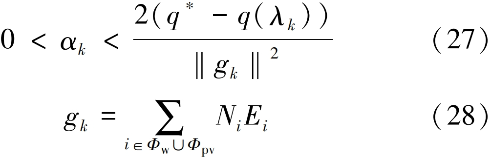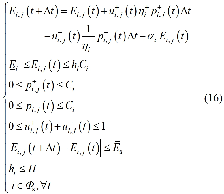 基于分解協(xié)調(diào)的 風(fēng)光儲聯(lián)合規(guī)劃分層優(yōu)化方法 史昭娣 朱寧 陳琦 摘 要:風(fēng)光儲聯(lián)合規(guī)劃可以充分考慮新能源資源特性,所得規(guī)劃結(jié)果在全局角度更科學(xué)。文中計(jì)及中長期時序電力平衡進(jìn)行風(fēng)光儲聯(lián)合規(guī)劃,規(guī)劃結(jié)果更為合理可靠。多區(qū)域風(fēng)光儲聯(lián)合規(guī)劃問題本質(zhì)上是一個廣域多電源、多變量、多時間斷面的高維復(fù)雜隨機(jī)規(guī)劃問題,求解非常耗時,甚至由于維數(shù)災(zāi)難無法求解?;诖?,文中建立多區(qū)域風(fēng)光儲聯(lián)合規(guī)劃模型,并提出基于區(qū)域分解協(xié)調(diào)的分層優(yōu)化算法,將多區(qū)域風(fēng)光儲聯(lián)合規(guī)劃模型分解為兩層問題,其中下層問題確定各子區(qū)域內(nèi)電源和儲能的配置容量;上層問題根據(jù)下層問題給定的容量規(guī)劃方案,確定各子區(qū)域電源運(yùn)行情況。兩層問題相互迭代,協(xié)調(diào)得到各區(qū)域風(fēng)光儲最優(yōu)容量。最后,算例分析驗(yàn)證了所提模型和方法的合理性及有效性。 關(guān)鍵詞:新能源;儲能;電源規(guī)劃;拉格朗日松弛;分解協(xié)調(diào);容量配置 近年來,我國風(fēng)電[1]、光伏[2]等新能源裝機(jī)和發(fā)電量均實(shí)現(xiàn)快速增長[3-4],大規(guī)模新能源接入電網(wǎng)增加了系統(tǒng)應(yīng)對新能源出力變化的靈活性需求,配置儲能是提升新能源電力系統(tǒng)靈活性的重要措施之一。新能源與儲能規(guī)劃可在源頭上維持電力系統(tǒng)供需平衡,為保障系統(tǒng)安全可靠運(yùn)行提供基礎(chǔ)。新能源規(guī)劃和儲能配置都需要計(jì)及系統(tǒng)時序特性。進(jìn)行新能源和儲能聯(lián)合優(yōu)化規(guī)劃有利于充分考慮新能源的出力特性,規(guī)劃結(jié)果更為合理可靠[5]。 針對新能源與儲能聯(lián)合規(guī)劃問題,已有學(xué)者進(jìn)行了相關(guān)研究。文獻(xiàn)[6]基于碳減排目標(biāo)建立了新能源和儲能規(guī)劃模型;文獻(xiàn)[7]基于新能源多階段規(guī)劃模型得到不同新能源配額場景下的儲能規(guī)劃方案;文獻(xiàn)[8-10]提出一種考慮新能源出力不確定性的風(fēng)光儲微電網(wǎng)儲能容量聯(lián)合優(yōu)化方法;文獻(xiàn)[11-12]基于典型日方法建立了微電網(wǎng)風(fēng)光儲雙層規(guī)劃模型;文獻(xiàn)[13]提出源-荷匹配的風(fēng)光儲容量配比優(yōu)化方法。以上研究表明了進(jìn)行新能源與儲能聯(lián)合規(guī)劃是高比例新能源電力系統(tǒng)經(jīng)濟(jì)、可靠發(fā)展的重要基礎(chǔ),但通常都是基于某一區(qū)域或系統(tǒng)進(jìn)行新能源與儲能規(guī)劃,對多區(qū)域新能源與儲能聯(lián)合規(guī)劃考慮較少。 新能源與儲能聯(lián)合規(guī)劃模型為典型的混合整數(shù)規(guī)劃(mixed integer programming,MIP)模型[14],具有高維數(shù)的特點(diǎn)[15-17],這類模型通常難以直接用于大區(qū)域復(fù)雜電網(wǎng)的中長期規(guī)劃研究。因此,亟須從減小源儲聯(lián)合規(guī)劃MIP模型規(guī)模方面來降低模型的求解難度。一些學(xué)者采用人工智能算法進(jìn)行規(guī)劃模型的尋優(yōu)求解。文獻(xiàn)[18]建立基于差異進(jìn)化算法的新能源規(guī)劃模型;文獻(xiàn)[19]提出基于神經(jīng)網(wǎng)絡(luò)算法的新能源電力系統(tǒng)容量優(yōu)化規(guī)劃方法;文獻(xiàn)[20]基于多準(zhǔn)則決策分析方法得到不同條件下的風(fēng)光儲容量配置比例。這些算法在一定程度上取得較好效果,但存在過于依賴初始值和尋優(yōu)路徑、局部搜索能力弱、在局部極值附近早熟收斂等問題。 新能源與儲能聯(lián)合規(guī)劃通常將MIP模型轉(zhuǎn)換為混合整數(shù)線性規(guī)劃(mixed integer linear programming,MILP)模型以便于求解。針對MILP模型,現(xiàn)階段多采用分支定界法[21]或割平面法[22]求解,然而這些方法仍需要較長計(jì)算時間[23]。分解協(xié)調(diào)技術(shù)[24]被廣泛用于提高M(jìn)IP問題的求解速度,基于拉格朗日松弛的分解法[25]是一種目前常用的分解協(xié)調(diào)技術(shù),適用于目標(biāo)函數(shù)中包含多決策變量的優(yōu)化問題求解。 基于以上分析,文中對多區(qū)域風(fēng)光儲聯(lián)合優(yōu)化規(guī)劃問題進(jìn)行研究。首先,考慮新能源出力隨機(jī)性,建立基于中長期時序電力平衡的多區(qū)域風(fēng)光儲聯(lián)合規(guī)劃模型。其次,提出基于區(qū)域分解協(xié)調(diào)的分層優(yōu)化方法,將多區(qū)域風(fēng)光儲聯(lián)合規(guī)劃模型分解為兩層問題,其中下層問題以最小化綜合成本為目標(biāo),確定各子區(qū)域內(nèi)電源和儲能的配置容量;上層問題根據(jù)下層問題給定的容量規(guī)劃方案,求解新能源消納最大化問題,確定各子區(qū)域電源運(yùn)行情況。兩層問題相互迭代,協(xié)調(diào)得到各區(qū)域風(fēng)光儲最優(yōu)容量。最后,算例分析驗(yàn)證了所提模型和方法的合理性及有效性。 一、多區(qū)域風(fēng)光儲聯(lián)合優(yōu)化規(guī)劃數(shù)學(xué)模型 (一)目標(biāo)函數(shù) 電源規(guī)劃的主要任務(wù)是在滿足負(fù)荷需求和各種技術(shù)經(jīng)濟(jì)指標(biāo)條件下確定電源類型和規(guī)模,使規(guī)劃期內(nèi)系統(tǒng)能可靠供電且