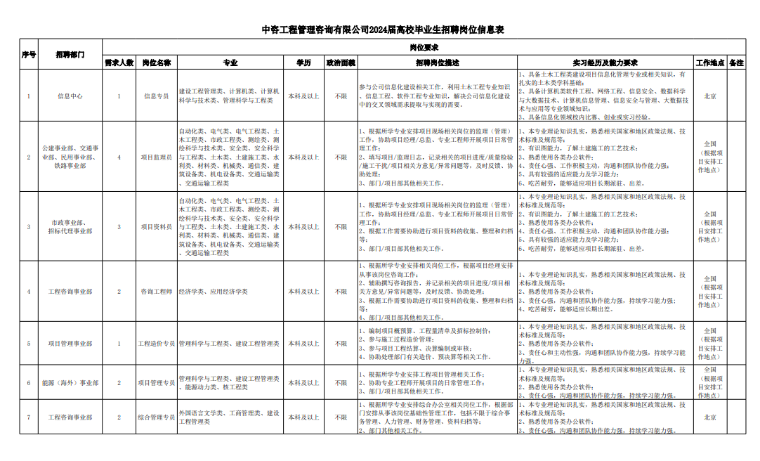中國國際工程咨詢有限公司所屬二級企業(yè)2024年校園招聘公告 | ||||