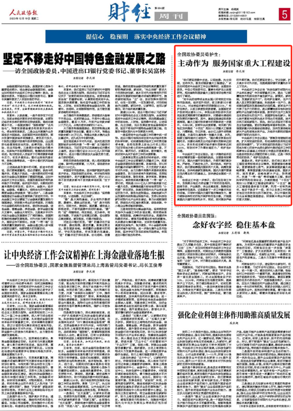 △全國政協(xié)委員,中咨公司黨委書記、董事長茍護(hù)生 “黨中央團(tuán)結(jié)帶領(lǐng)全黨全國人民有效應(yīng)對各種風(fēng)險(xiǎn)挑戰(zhàn),經(jīng)濟(jì)回升向好,前三季度GDP增長5.2%,對全球經(jīng)濟(jì)增長的貢獻(xiàn)超過30%?!逼堊o(hù)生表示,從前三季度投資數(shù)據(jù)看,全國固定資產(chǎn)投資同比增長3.1%,體現(xiàn)出政府投資作為宏觀政策逆周期調(diào)節(jié)的重要抓手,對穩(wěn)增長調(diào)結(jié)構(gòu)所發(fā)揮的關(guān)鍵作用。其中,基礎(chǔ)設(shè)施建設(shè)投資數(shù)據(jù)亮眼,重大工程對投資增長的貢獻(xiàn)率進(jìn)一步提升。今年以來,按照中央決策部署,有關(guān)部門和地區(qū)加快推進(jìn)“十四五”規(guī)劃102項(xiàng)重大工程建設(shè),川藏鐵路、引江濟(jì)淮、金沙江上游外送特高壓通道、大型石化基地等一批重大交通、水利、能源工程相繼開工或投產(chǎn)。“國內(nèi)需求表現(xiàn)也可圈可點(diǎn)。如最終消費(fèi)支出對經(jīng)濟(jì)增長貢獻(xiàn)率達(dá)到83.2%,資本形成總額對經(jīng)濟(jì)增長貢獻(xiàn)率達(dá)到29.8%,有效對沖了外需收縮壓力?!逼堊o(hù)生補(bǔ)充道。 中央經(jīng)濟(jì)工作會議指出,進(jìn)一步推動(dòng)經(jīng)濟(jì)回升向好需要克服一些困難和挑戰(zhàn),主要是有效需求不足,國內(nèi)大循環(huán)存在堵點(diǎn),外部環(huán)境的復(fù)雜性、嚴(yán)峻性、不確定性上升。面對挑戰(zhàn),茍護(hù)生表示,我們要統(tǒng)籌國內(nèi)國際兩個(gè)大局,統(tǒng)籌發(fā)展和安全,加快構(gòu)建新發(fā)展格局。國內(nèi)大循環(huán)要建立在內(nèi)需主動(dòng)力的基礎(chǔ)上,加快建設(shè)全國統(tǒng)一大市場。 他結(jié)合工作進(jìn)一步表示,我們在咨詢工作中,發(fā)現(xiàn)部分地區(qū)仍然設(shè)置了不同的市場規(guī)則,招商引資、產(chǎn)業(yè)激勵(lì)、涉企優(yōu)惠政策、稅費(fèi)征收標(biāo)準(zhǔn)等存在差異。這些都是下一步工作重點(diǎn)關(guān)注的領(lǐng)域,只有針對國內(nèi)大循環(huán)堵點(diǎn)精準(zhǔn)發(fā)力,著力破除各種形式的地方保護(hù)和市場分割,才能提高國內(nèi)大循環(huán)效率和水平。同時(shí),面對復(fù)雜嚴(yán)峻的外部環(huán)境,我們還要堅(jiān)定信心、守正創(chuàng)新,擴(kuò)大高水平對外開放,在提高國際循環(huán)質(zhì)量和水平上下功夫。 中央經(jīng)濟(jì)工作會議將“科技創(chuàng)新引領(lǐng)現(xiàn)代化產(chǎn)業(yè)體系建設(shè)”作為首要重點(diǎn)工作,提出“以顛覆性技術(shù)和前沿技術(shù)催生新產(chǎn)業(yè)、新模式、新動(dòng)能,發(fā)展新質(zhì)生產(chǎn)力”。在茍護(hù)生看來,生產(chǎn)力是人類文明發(fā)展的基礎(chǔ),科技是第一生產(chǎn)力,是實(shí)施創(chuàng)新驅(qū)動(dòng)發(fā)展戰(zhàn)略的內(nèi)在機(jī)理。新質(zhì)生產(chǎn)力代表了生產(chǎn)力的躍遷,是以顛覆性前沿性科技創(chuàng)新和產(chǎn)業(yè)創(chuàng)新為根本前提,數(shù)字時(shí)代生產(chǎn)工具發(fā)生本質(zhì)性變化的生產(chǎn)力。我國原創(chuàng)性創(chuàng)新少,核心技術(shù)掌控與世界先進(jìn)水平相比仍有差距,技術(shù)交流又面臨新阻力。因此,我們必須堅(jiān)定不移走自主創(chuàng)新道路,更好發(fā)揮新型舉國體制優(yōu)勢,加強(qiáng)國家重大科技基礎(chǔ)設(shè)施建設(shè),加快發(fā)展戰(zhàn)略性新興產(chǎn)業(yè)和培育未來產(chǎn)業(yè),為經(jīng)濟(jì)長期向好提供源源不斷的內(nèi)在動(dòng)力。 中央經(jīng)濟(jì)工作會議提出“要激發(fā)有潛能的消費(fèi),擴(kuò)大有效益的投資,形成消費(fèi)和投資相互促進(jìn)的良性循環(huán)”。“擴(kuò)大有效益的投資是以習(xí)近平同志為核心的黨中央深化新時(shí)代做好經(jīng)濟(jì)工作的規(guī)律性認(rèn)識基礎(chǔ)上對投資工作提出的更高要求,也是政府投資必須錨定的核心目標(biāo),這是一種負(fù)責(zé)任的投資?!逼堊o(hù)生如是說。 展望未來,茍護(hù)生表示,我們將以高水平工程咨詢貫徹落實(shí)會議精神,既要增強(qiáng)憂患意識,更要增強(qiáng)信心底氣,緊緊圍繞國家重大戰(zhàn)略部署,聚焦國家重大科技基礎(chǔ)設(shè)施、國家水網(wǎng)、城市更新、戰(zhàn)略性新興產(chǎn)業(yè)、防洪減災(zāi)、共建“一帶一路”等領(lǐng)域重大工程,做好科學(xué)研究和咨詢論證,為高效推進(jìn)“十四五”規(guī)劃102項(xiàng)重大工程建設(shè)和謀劃“十五五”重大工程儲備提供智力支撐,利用一切有利條件,能多干就多干一些,努力以自身工作的確定性應(yīng)對形勢變化的不確定性,為以中國式現(xiàn)代化全面推進(jìn)強(qiáng)國建設(shè)、民族復(fù)興偉業(yè)作出新的更大貢獻(xiàn)。 | |||||