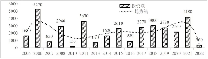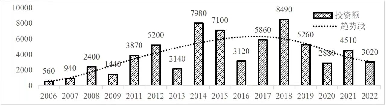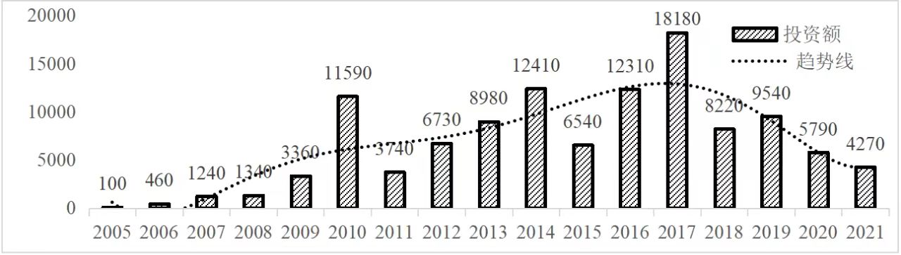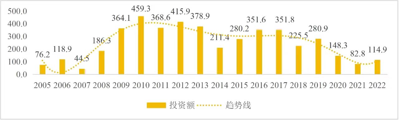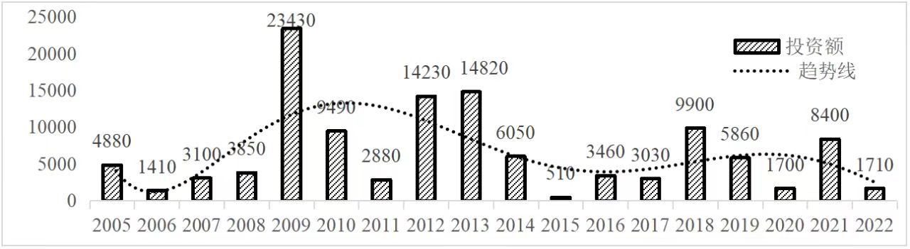 企業(yè)境外投資研究之二: 中央企業(yè)境外投資情況 楊凱越 編者按:根據(jù)商務(wù)部2023年10月發(fā)布的我國(guó)對(duì)外直接投資統(tǒng)計(jì)數(shù)據(jù),截至2022年,我國(guó)對(duì)外直接投資存量達(dá)27548.1億美元,當(dāng)年對(duì)外直接投資規(guī)模達(dá)1631.2億美元,居世界第二位。截至2022年底,中國(guó)2.9萬(wàn)家境內(nèi)投資者共設(shè)立境外企業(yè)4.66萬(wàn)家,分布在全球190個(gè)國(guó)家(地區(qū)),年末境外企業(yè)資產(chǎn)總額8.4萬(wàn)億美元。隨著“雙循環(huán)”戰(zhàn)略、“走出去”戰(zhàn)略和“一帶一路”倡議的深入推進(jìn)實(shí)施,對(duì)企業(yè)境外投資開(kāi)展系統(tǒng)研究,探索如何更高質(zhì)量地開(kāi)展境外投資,成為當(dāng)前一項(xiàng)重要和緊迫的任務(wù)。本公眾號(hào)將企業(yè)境外投資研究成果以系列文章的形式陸續(xù)刊發(fā),本文是研究報(bào)告的第二部分,供業(yè)界同仁參考。 一、總體情況 中央企業(yè)2013-2019年境外投資年均增速約15%,營(yíng)業(yè)收入增速保持在約4.5%。根據(jù)國(guó)務(wù)院國(guó)資委和社科院聯(lián)合發(fā)布的《中央企業(yè)海外社會(huì)責(zé)任藍(lán)皮書(shū)(2020)》,中央企業(yè)在境外投資發(fā)展時(shí),7%投資第一產(chǎn)業(yè),69%參與第二產(chǎn)業(yè),40%發(fā)展第三產(chǎn)業(yè)。截至2019年底,中央企業(yè)境外資產(chǎn)總額8.1萬(wàn)億元、所有者權(quán)益2.3萬(wàn)億元。其中,81家中央企業(yè)在“一帶一路”沿線承擔(dān)項(xiàng)目數(shù)量逾3400個(gè)。中央企業(yè)承擔(dān)“一帶一路”基礎(chǔ)設(shè)施項(xiàng)目數(shù)比率超過(guò)60%,合同投資額超過(guò)80%。 近年來(lái),中央企業(yè)境外投資及運(yùn)營(yíng)總體仍呈現(xiàn)較為平穩(wěn)的態(tài)勢(shì)。中央企業(yè)2013-2020年境外營(yíng)業(yè)收入總規(guī)模逾24萬(wàn)億元,利潤(rùn)總規(guī)模約6000億元。2021年,中央企業(yè)和單位對(duì)外非金融類(lèi)直接投資642.9億美元,占我國(guó)對(duì)外直接投資比重約36.0%,同比增長(zhǎng)30.7%,逾60%來(lái)自收益再投資。根據(jù)國(guó)務(wù)院國(guó)資委《中央企業(yè)海外發(fā)展報(bào)告(2023)》,截至2022年底,中央企業(yè)境外投資機(jī)構(gòu)和項(xiàng)目逾8000個(gè),境外員工125萬(wàn)人,境外資產(chǎn)總額近8萬(wàn)億元(比2019年略有下降),當(dāng)年境外投資規(guī)模3739億元。 表1 中央企業(yè)境外投資規(guī)模 單位:億美元 數(shù)據(jù)來(lái)源:商務(wù)部2016-2021年度中國(guó)對(duì)外直接投資統(tǒng)計(jì)公報(bào)。 本文根據(jù)中國(guó)全球投資追蹤(China Global Investment Tracker,CGIT)數(shù)據(jù)庫(kù),按照國(guó)務(wù)院國(guó)資委2023年中央企業(yè)名錄,對(duì)我國(guó)中央企業(yè)境外投資情況進(jìn)行了整理。因數(shù)據(jù)口徑不同,中央企業(yè)境外投資規(guī)模與前述商務(wù)部統(tǒng)計(jì)數(shù)據(jù)有所差異。根據(jù)CGIT數(shù)據(jù),中央企業(yè)境外投資在2013年達(dá)到峰值858.7億美元,此后呈下降趨勢(shì),2022年境外投資規(guī)模僅180.3億美元。 數(shù)據(jù)來(lái)源:CGIT數(shù)據(jù)庫(kù),作者整理。 圖1 2005-2022年中央企業(yè)境外投資規(guī)模 單位:億美元 根據(jù)CGIT數(shù)據(jù)庫(kù),中央企業(yè)2005-2022年各行業(yè)境外投資情況見(jiàn)圖2。其中,能源類(lèi)境外投資規(guī)模最高,為4460.1億美元;建筑工程類(lèi)(包括鐵路、公路等交通基礎(chǔ)設(shè)施建設(shè)類(lèi))境外投資規(guī)模其次,為1534億美元;金屬類(lèi)(含礦產(chǎn))境外投資排名第三為972.5億美元;公用事業(yè)類(lèi)境外投資規(guī)模第四,為702.5億美元;此外,中央企業(yè)境外投資涉及領(lǐng)域還包括旅游、健康、金融、科技、農(nóng)業(yè)、化工、物流、娛樂(lè)等。2018-2022年各行業(yè)境外投資情況見(jiàn)圖3。 數(shù)據(jù)來(lái)源:CGIT數(shù)據(jù)庫(kù),作者整理。 圖2 2005-2022年中央企業(yè)分行業(yè)境外投資規(guī)模 單位:億美元 數(shù)據(jù)來(lái)源:CGIT數(shù)據(jù)庫(kù),作者整理。 圖3 2018-2022年中央企業(yè)分行業(yè)境外投資規(guī)模 單位:百萬(wàn)美元 二、分行業(yè)情況 本文對(duì)2005年1月-2022年12月我國(guó)中央企業(yè)境外投資選取能源行業(yè)、建筑工程行業(yè)、金屬行業(yè)、公用事業(yè)、旅游業(yè)等投資規(guī)模位居前列的行業(yè),分行業(yè)情況進(jìn)行了整理。 (一)能源行業(yè) 2005-2022年中央企業(yè)能源行業(yè)境外投資情況見(jiàn)圖4。分析發(fā)現(xiàn),我國(guó)中央企業(yè)能源行業(yè)境外投資在2010年達(dá)到峰值后呈逐年下降的趨勢(shì)。 數(shù)據(jù)來(lái)源:CGIT數(shù)據(jù)庫(kù),作者整理。 圖4 能源行業(yè)2005-2022年中央企業(yè)境外投資規(guī)模 單位:億美元 (二)建筑工程行業(yè) 2005-2022年中央企業(yè)建筑工程行業(yè)境外投資情況見(jiàn)圖5。分析發(fā)現(xiàn),建筑工程行業(yè)境外投資在2009年達(dá)到峰值,此后呈逐年下降。 數(shù)據(jù)來(lái)源:CGIT數(shù)據(jù)庫(kù),作者整理。 圖5 建筑工程行業(yè)2005-2022年中央企業(yè)境外投資規(guī)模 單位:億美元 (三)金屬行業(yè) 2005-2022年中央企業(yè)金屬行業(yè)境外投資情況見(jiàn)圖6