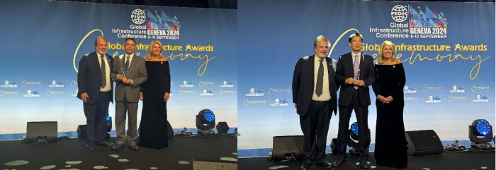 日前,從瑞士日內(nèi)瓦傳來喜訊,中國國際工程咨詢有限公司(以下簡稱中咨公司)聯(lián)合陜西省水利電力勘測設計研究院、中鐵第一勘察設計院集團有限公司申報的“陜西省引漢濟渭工程”,以及中咨公司與民航機場建設集團西南設計研究院有限公司聯(lián)合申報的“西藏阿里地區(qū)普蘭機場項目”,在2024年度“菲迪克工程項目獎”評選中,雙雙榮獲杰出獎。這也是中咨公司第八次斬獲該項殊榮。 菲迪克(國際咨詢工程師聯(lián)合會,F(xiàn)IDIC)是全球工程咨詢業(yè)的權(quán)威組織,代表該領域最高水平?!胺频峡斯こ添椖开劇彼赜袊H工程界“諾貝爾獎”之稱。 2024年9月8日至10日,國際咨詢工程師聯(lián)合會(FIDIC)全球基礎設施大會在瑞士日內(nèi)瓦舉行。中咨公司黨委書記、董事長茍護生應邀率隊參會。從西氣東輸管道一線工程到500米口徑球面射電望遠鏡,從藏中電力聯(lián)網(wǎng)工程到金沙江白鶴灘水電站……中咨公司在“菲迪克工程項目獎”評選中屢創(chuàng)佳績,這是中國工程、中國標準、中國咨詢走向國際的生動見證。如今,這份榮耀名單上再添新成員——陜西引漢濟渭工程、西藏阿里地區(qū)普蘭機場項目。 中咨公司黨委書記、董事長茍護生及咨詢團隊成員與菲迪克組委會成員合影 中咨公司交通業(yè)務部副主任李孝榮、農(nóng)村經(jīng)濟與地區(qū)業(yè)務部水利處處長劉大慶代表公司上臺領獎 菲迪克主席Catherine Karakatsanis在頒獎致辭中表示,獲獎項目不僅是咨詢工程師優(yōu)異勞動成果的反映,也是他們?yōu)樯鐣?chuàng)造價值的體現(xiàn),有力地表明,工程咨詢在改善和提升人類生活質(zhì)量方面發(fā)揮著極其重要的作用。這也與本次大會的主題——“基礎設施改變生活:投資建設一個人類共享的美好世界”高度契合。 菲迪克主席Catherine Karakatsanis致辭 據(jù)悉,共有來自全球的15個項目榮獲2024年度“菲迪克工程項目獎”。中國工程咨詢協(xié)會作為中國工程咨詢行業(yè)在菲迪克的代表推薦國內(nèi)項目參加評選。我國共有4個交通項目和1個水利項目獲獎,占全球獲獎項目總數(shù)的三分之一,中國項目獲獎數(shù)量連續(xù)十一年榮登榜首。 中咨公司捧獲兩項殊榮 | |||||
