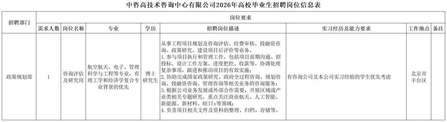 中國(guó)國(guó)際工程咨詢有限公司所屬企業(yè)2026年校園招聘公告 | ||||