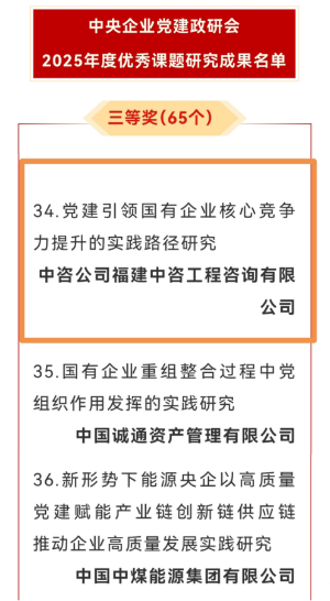 喜訊!中咨公司研究課題榮獲中央企業(yè)黨建政研會(huì)2025年度優(yōu)秀課題研究成果三等獎(jiǎng)