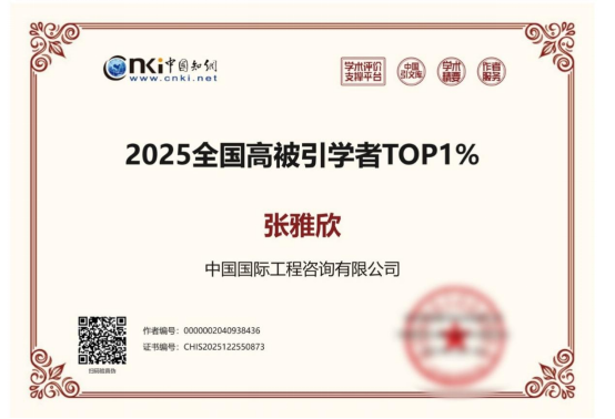 太贊了,TOP1% !公司青年科技人才實(shí)力登榜,這份榮耀超有分量! 近日,中國(guó)知網(wǎng)(CNKI)發(fā)布“2025全國(guó)高被引學(xué)者”榜單。公司資源與環(huán)境業(yè)務(wù)部(碳達(dá)峰碳中和協(xié)同推進(jìn)中心,以下簡(jiǎn)稱(chēng)“資環(huán)部”)青年員工、中咨卓越工程師學(xué)院培育的優(yōu)秀人才張雅欣,憑借其在資源環(huán)境與“雙碳”領(lǐng)域的亮眼研究成果,成功入選該榜單最高層級(jí)——“2025高被引學(xué)者TOP1%”。 張雅欣作為公司自主培養(yǎng)、淬煉成長(zhǎng)的青年科技人才,這份榮譽(yù)的獲得,不僅是對(duì)其個(gè)人研究能力的高度認(rèn)可,也是中咨智庫(kù)學(xué)術(shù)影響力和社會(huì)影響力的有力彰顯,體現(xiàn)了公司高端智庫(kù)建設(shè)與青年人才培養(yǎng)的顯著成效。 榮譽(yù)證書(shū) “全國(guó)高被引學(xué)者”評(píng)選基于中國(guó)知網(wǎng)學(xué)術(shù)文獻(xiàn)大數(shù)據(jù),重點(diǎn)考察學(xué)者研究成果的實(shí)際引用率和綜合學(xué)術(shù)貢獻(xiàn)度,是國(guó)內(nèi)具有較高公信力的學(xué)術(shù)評(píng)價(jià)體系之一。“TOP1%”榜單作為該評(píng)選的最高榮譽(yù),旨在遴選近十年來(lái)綜合學(xué)術(shù)影響力位居該領(lǐng)域全國(guó)前1%的學(xué)者,入選標(biāo)準(zhǔn)嚴(yán)格、比例極低,是衡量科研人員研究水平的重要標(biāo)志。對(duì)于成功入選,張雅欣難掩激動(dòng),但也說(shuō)出了肺腑之言:“沒(méi)有中咨公司的平臺(tái),我很難取得這樣的成績(jī)?!?/p> 栽下梧桐樹(shù),引得鳳凰來(lái)。張雅欣2023年博士畢業(yè)于清華大學(xué)環(huán)境學(xué)院,同年11月進(jìn)入公司博士后科研工作站,因表現(xiàn)優(yōu)異,于2025年11月出站后入職公司資環(huán)部。談到這段從學(xué)校到職場(chǎng)的進(jìn)階,張雅欣說(shuō):“讀博期間,我就對(duì)中咨公司充滿(mǎn)向往,經(jīng)過(guò)到公司兩年多的歷練,我更慶幸,我的選擇超出期待!”她說(shuō)中咨公司給予了她許多養(yǎng)料:“在這里,我積累了豐富的項(xiàng)目實(shí)踐經(jīng)驗(yàn),還能接觸各行各業(yè)的專(zhuān)家大咖,同時(shí)獲得參與政策研究的機(jī)會(huì),這些為我開(kāi)展課題研究提供了豐厚沃土?!?/p> “我的研究課題都是從業(yè)務(wù)實(shí)踐中來(lái)的?!睆堁判梨告傅纴?lái)。工作期間,她充分把握公司“宏觀戰(zhàn)略、中觀產(chǎn)業(yè)、微觀項(xiàng)目”的“三位一體”優(yōu)勢(shì),堅(jiān)持從項(xiàng)目實(shí)踐中提煉科學(xué)認(rèn)知,再用科學(xué)認(rèn)知反哺項(xiàng)目實(shí)踐,推動(dòng)智慧的火花在中咨平臺(tái)競(jìng)相綻放。 學(xué)術(shù)研究方面,張雅欣以核心作者身份發(fā)表論文十余篇,累計(jì)被引用量超過(guò)1300次。2025年,她申報(bào)的《“碳排放雙控”體系下地方碳排放預(yù)算管理模型與應(yīng)用研究》研究課題,成功獲批中國(guó)博士后科學(xué)基金面上項(xiàng)目,實(shí)現(xiàn)公司博士后工作站申報(bào)國(guó)家級(jí)基金的歷史性突破。政策實(shí)踐方面,她的博士后課題研究成果《碳排放統(tǒng)計(jì)核算方法與經(jīng)濟(jì)模型研究:基于地方碳排放預(yù)算管理的視角》陸續(xù)在多地碳排放雙控和碳預(yù)算管理咨詢(xún)項(xiàng)目中落地應(yīng)用,取得良好實(shí)踐成效。 張雅欣(左四)參加公司2025年度博士后出站考核 長(zhǎng)期以來(lái),公司依托中咨卓越工程師學(xué)院、博士后科研工作站等平臺(tái),持續(xù)完善高層次專(zhuān)業(yè)人才引育用留機(jī)制,為青年科技人才聚焦國(guó)家戰(zhàn)略、開(kāi)展前沿研究提供了有力支撐。公司智庫(kù)研究與咨詢(xún)實(shí)踐雙輪驅(qū)動(dòng),推動(dòng)構(gòu)建智庫(kù)建設(shè)和全過(guò)程咨詢(xún)協(xié)同并進(jìn)的良好格局。 展望未來(lái),公司將堅(jiān)持“科技是第一生產(chǎn)力、人才是第一資源、創(chuàng)新是第一動(dòng)力”的鮮明導(dǎo)向,努力打造高端戰(zhàn)略型人才的聚集地,加快建設(shè)國(guó)家高端智庫(kù)和世界一流咨詢(xún)機(jī)構(gòu),為推進(jìn)中國(guó)式現(xiàn)代化貢獻(xiàn)更多智慧和力量。 | |||||